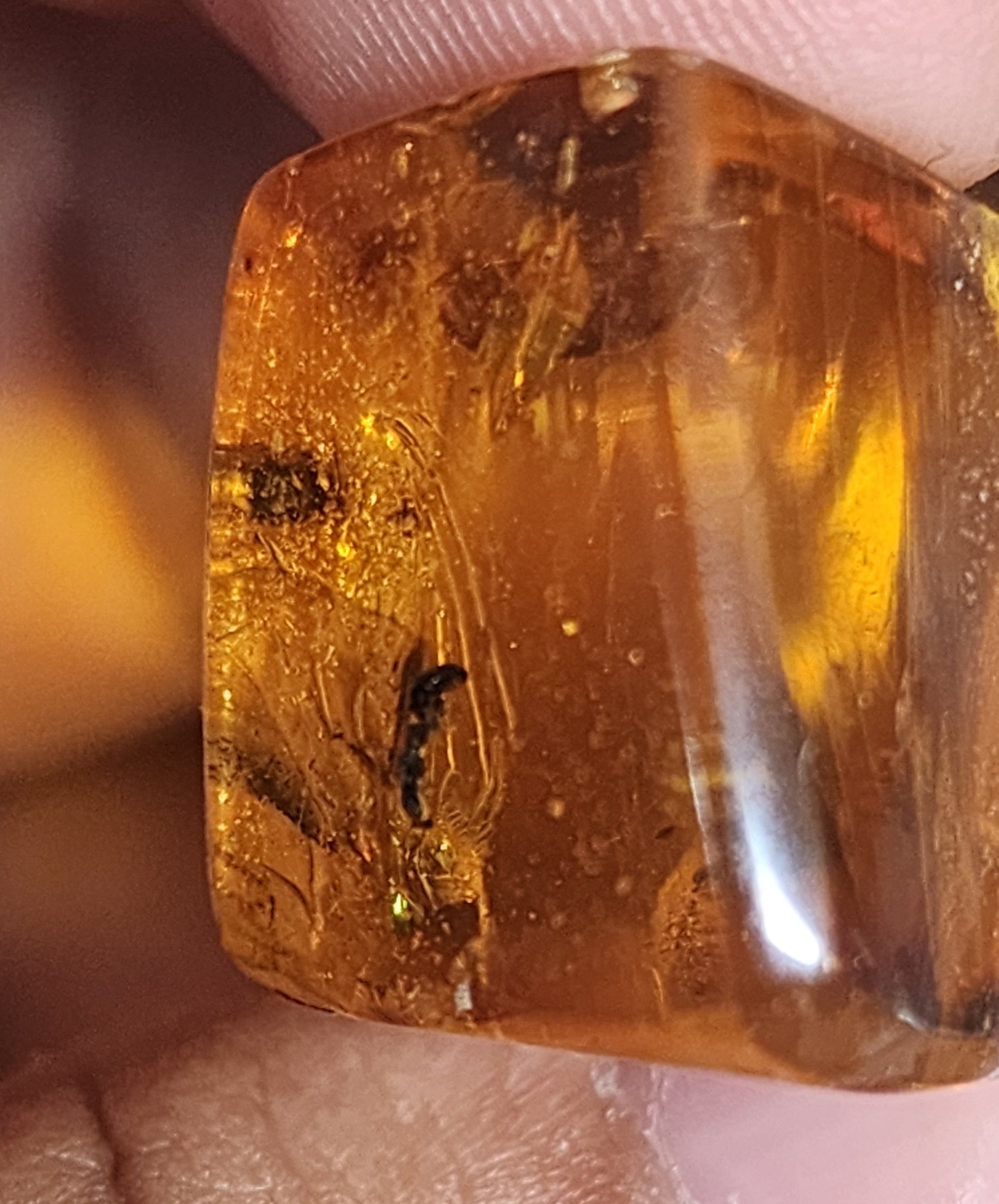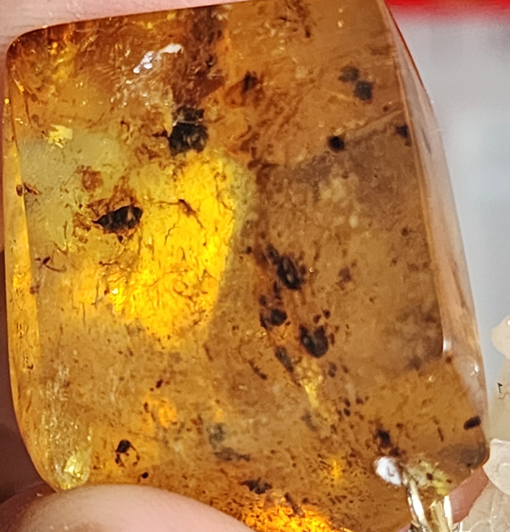 Collar de ambar Dominicano semi bruto con inclusiones de insectos y piedra de madre perla.