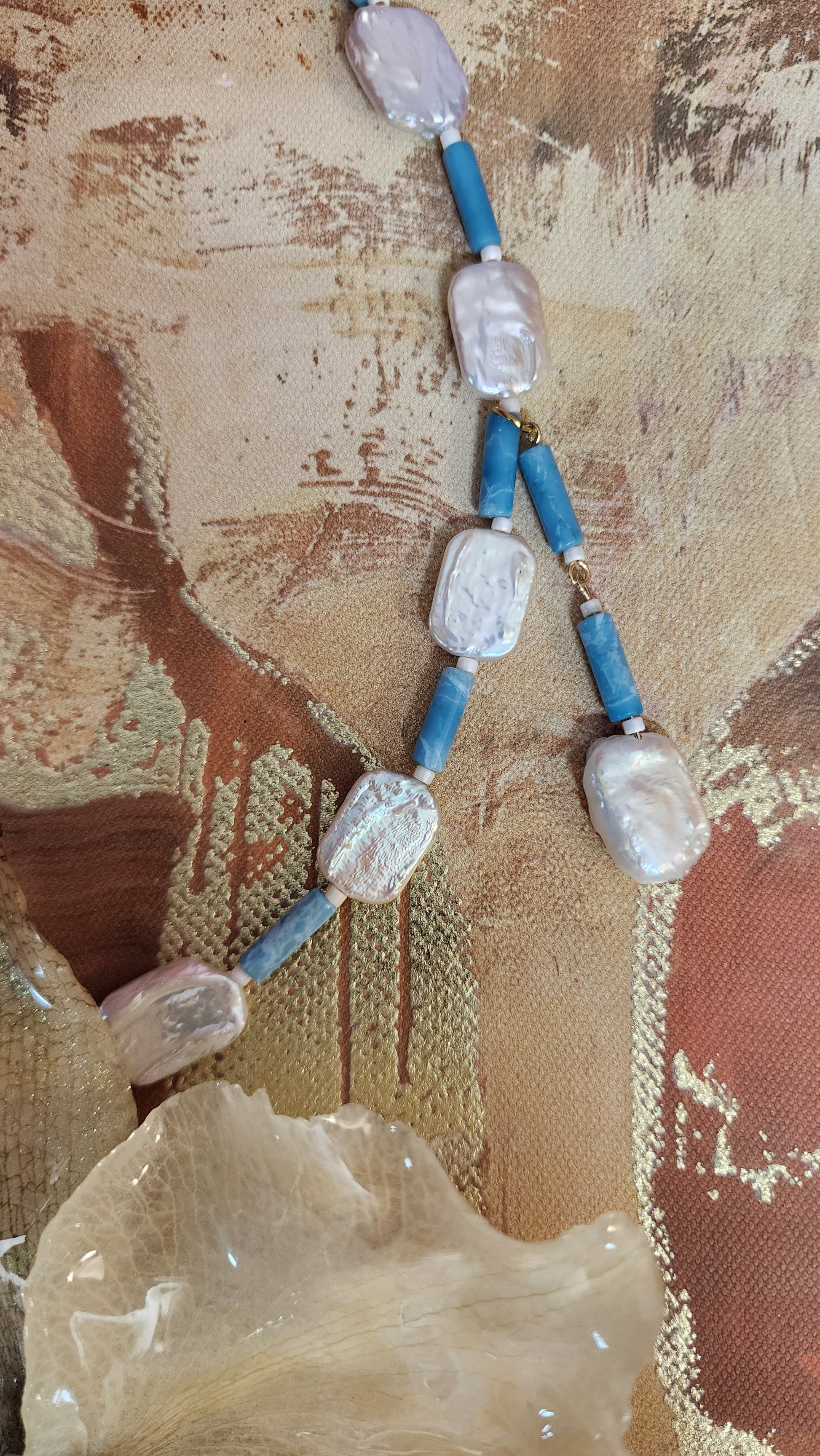 Collar de larimar y perlas de agua dulce.